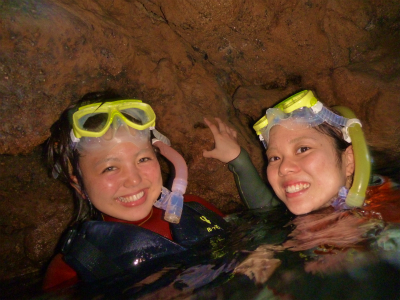 青の洞窟の中のまぶしいほどのクリスタルブルーと外洋に広がるディープブルーの大珊瑚礁。この体験、感動間違いなし!!