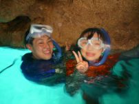 青の洞窟の中のまぶしいほどのクリスタルブルーと外洋に広がるディープブルーの大珊瑚礁。この体験、感動間違いなし!!