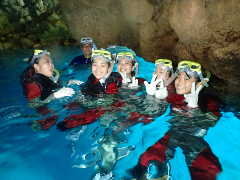 青の洞窟の中のまぶしいほどのクリスタルブルーと外洋に広がるディープブルーの大珊瑚礁。この体験、感動間違いなし!!