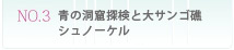 青の洞窟の中のまぶしいほどのクリスタルブルーと外洋に広がるディープブルーの大珊瑚礁。この体験、感動間違いなし!!
