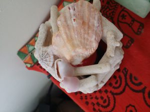 仕事と関係なく、自分で拾ったサンゴや貝殻でランプシェードを作ってみました!!
